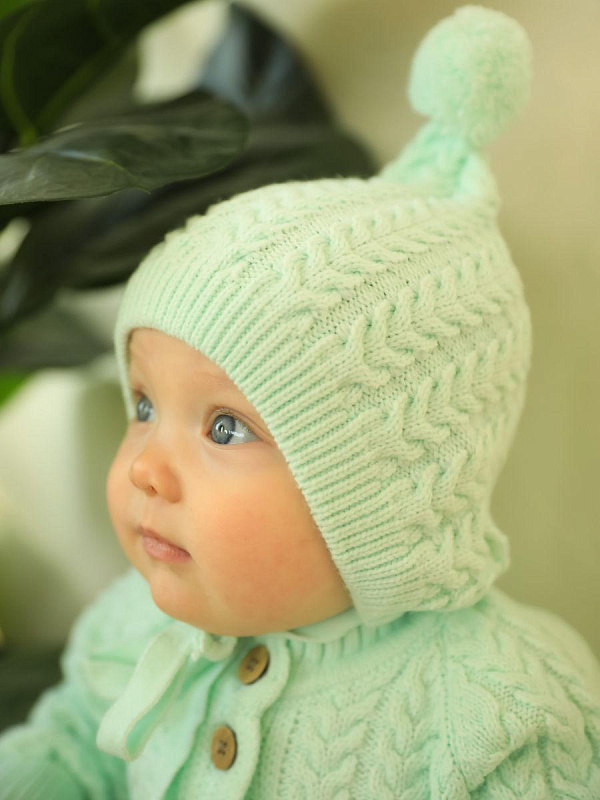 Шапочка вязаная Little Star Коса Гномик 80124 (Чз-нк) мятный 36