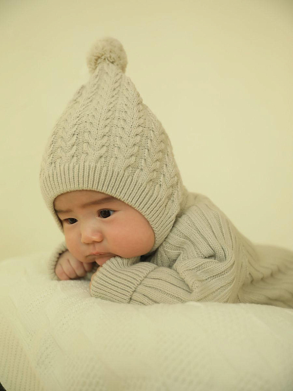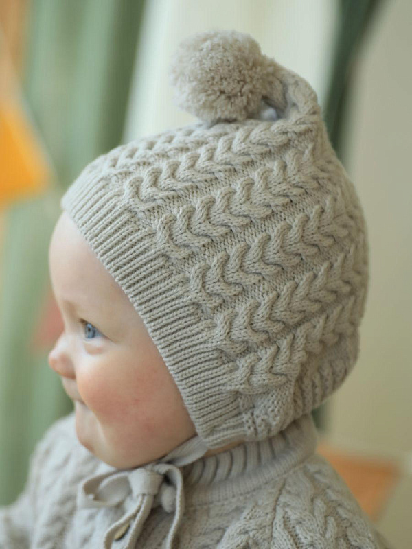Шапочка вязаная Little Star Коса Гномик 80124 (Чз-нк) жемчужный (2067) 36