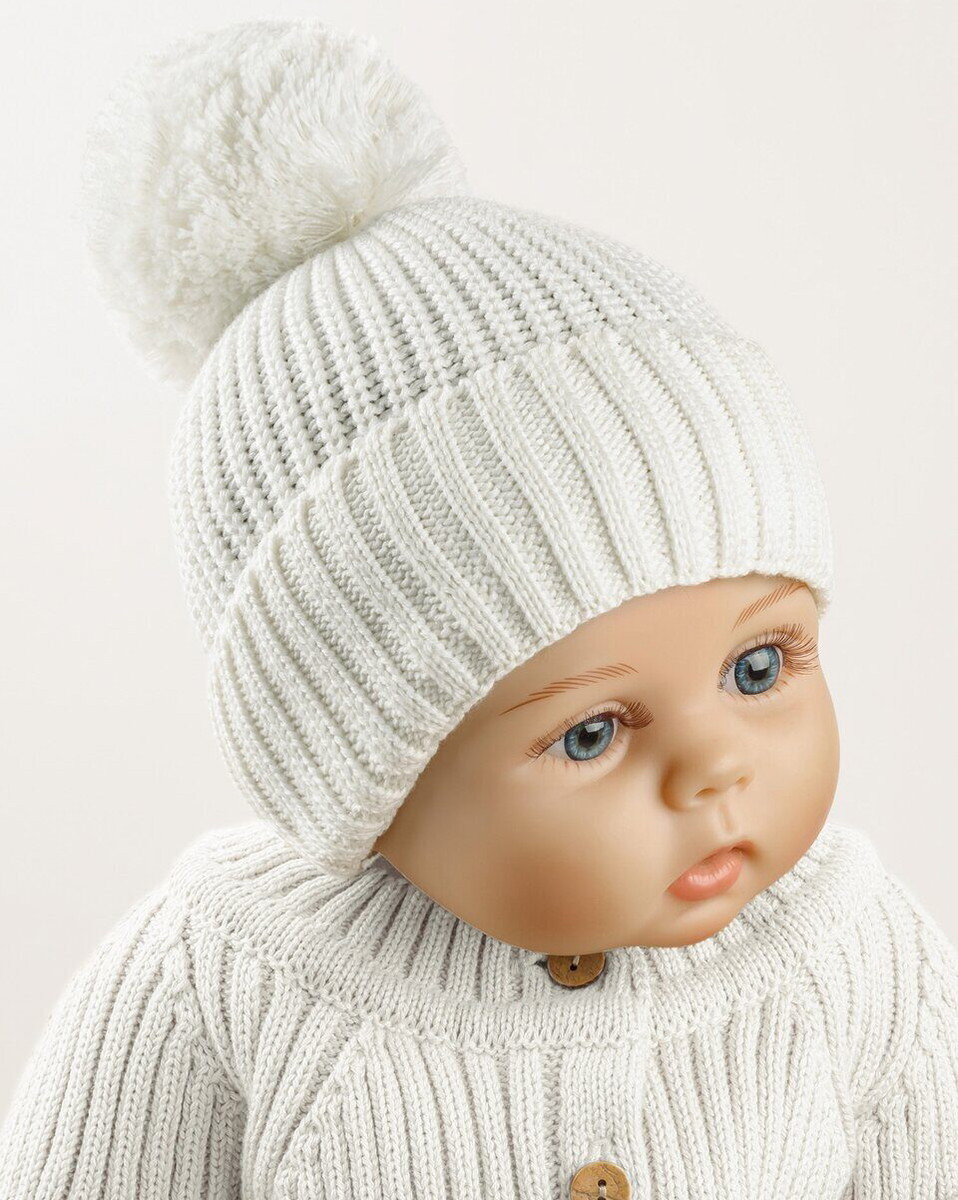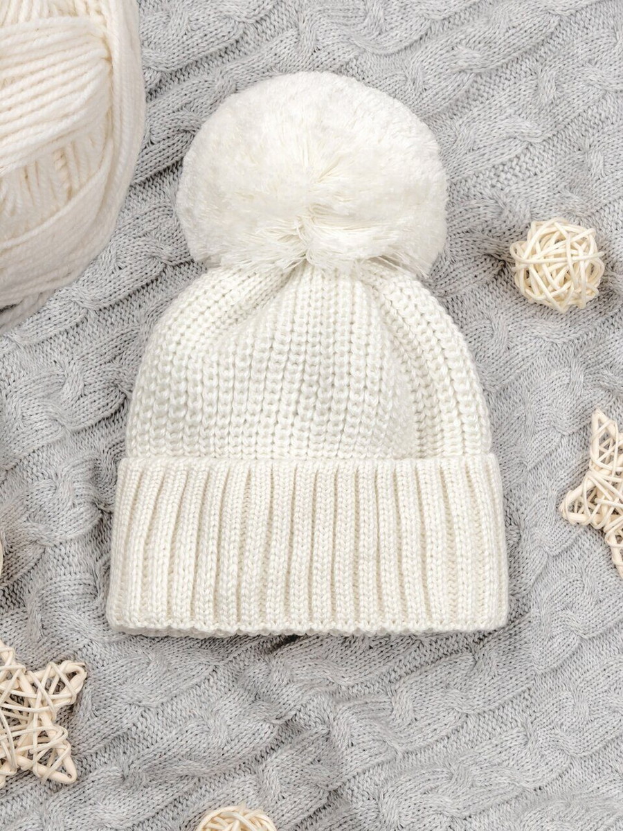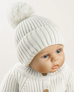Шапочка вязаная с помпоном AmaroBaby Pure Love Muffin демисезонная молочный 42