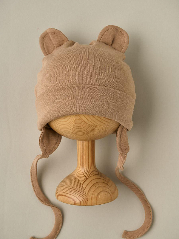 Шапочка-котелок с завязками Little Star Мишка 84010 (ЧЗ-мз) бежевый 36