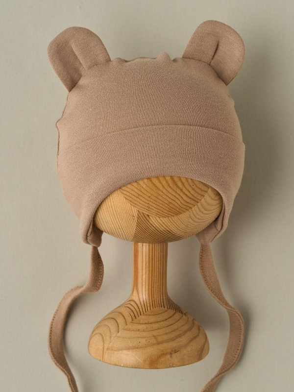 Шапочка-котелок с завязками Little Star Мишка 8405 (ЧЗ-мз) бежевый 38
