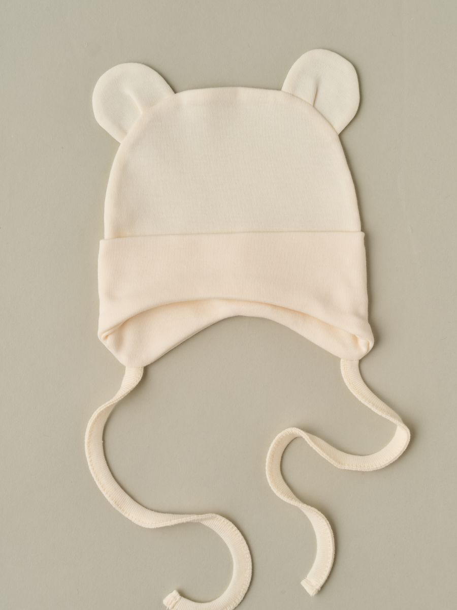 Шапочка-котелок с завязками Little Star Мишка 8405 (ЧЗ-мз) сливочный 38