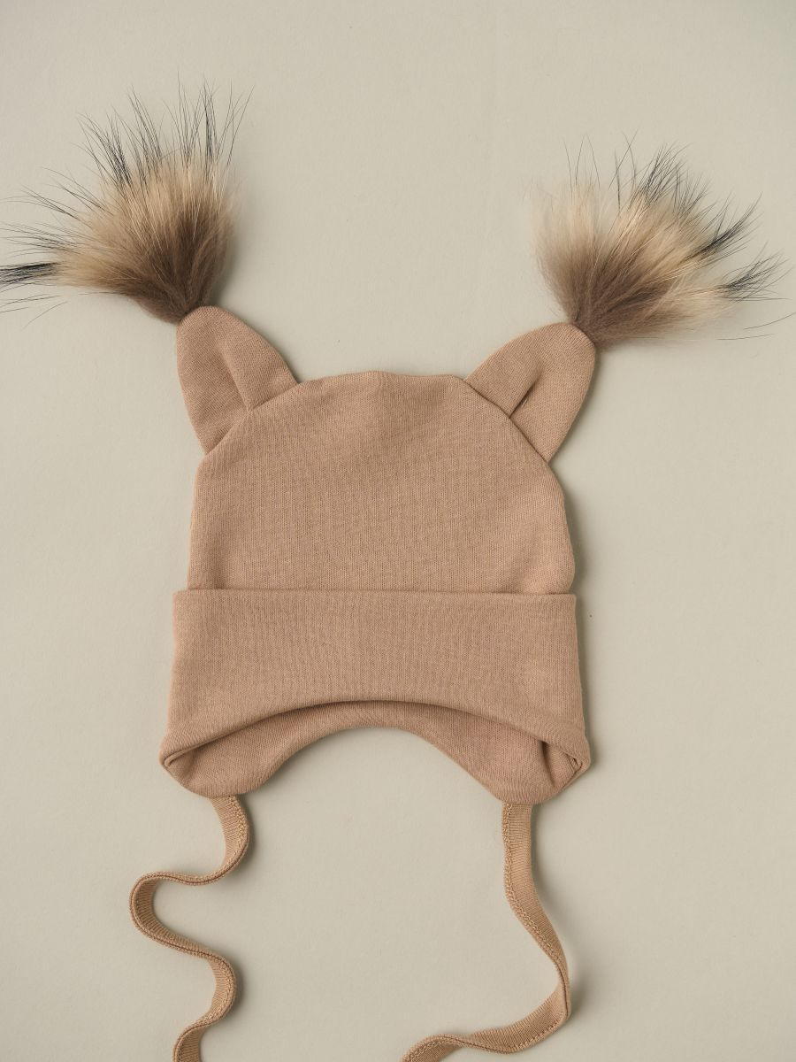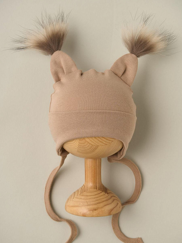 Шапочка-котелок с завязками Little Star Рысенок 8405 (ЧЗ-мз) бежевый 38