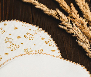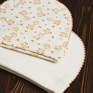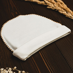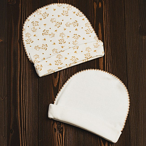 Комплект шапочек состоит их двух изделий. Модели выполнены из натуральной хлопковой ткани, которая хорошо пропускает воздух и немного тянется. Швы изделий выполнены с наружной части и не вызывают дискомфорта у ребенка.