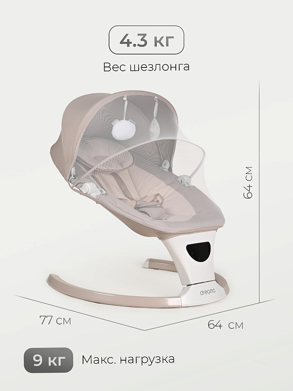 Электронный шезлонг-качели Tomix Dreama — это умное решение для укачивания, развития и отдыха ребенка с первых дней жизни.