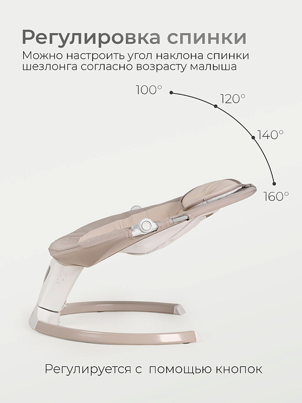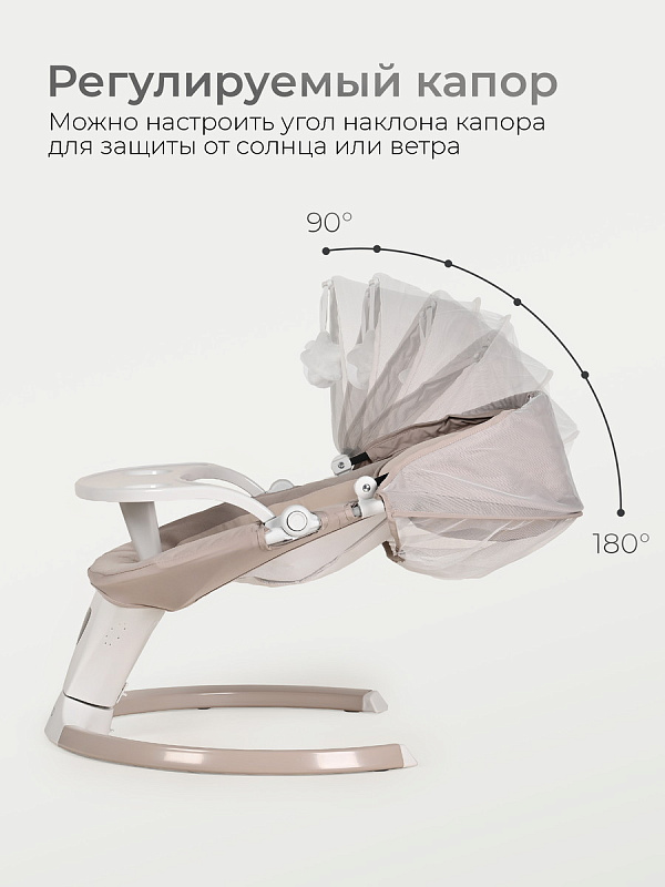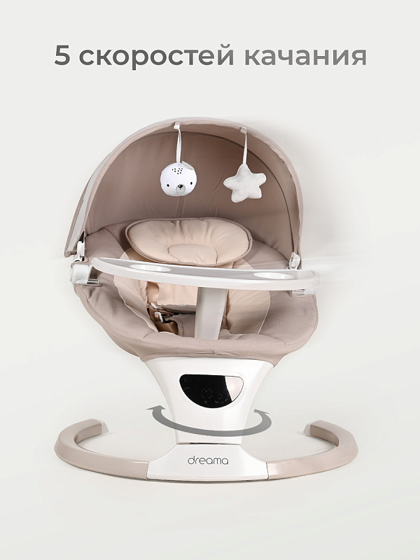5 скоростей качания с плавной регулировкой позволяют подобрать ритм от нежного покачивания до убаюкивающего движения. Автоматический старт-стоп и таймер (8/15/30 мин) обеспечивают комфорт без вашего участия.