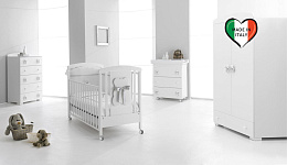Детский шкаф Erbesi Bubu – это вместительная модель от итальянского бренда, оснащенная двумя дверцами. Корпус шкафа изготовлен из высококачественной ДСП класса Е1, характеризующейся низким содержанием формальдегида, и покрыт износостойким ПВХ материалом. Для большей прочности и устойчивости задние стенки выполнены из того же ДСП. Внутри расположены удобная регулируемая по высоте полка, штанга для одежды, а также вместительный выдвижной ящик снаружи. Габариты шкафа составляют 100 см в ширину, 55 см в глубину и 177 см в высоту, а его вес – 89,9 кг. В целом, это прочный и функциональный шкаф, идеально подходящий для детской комнаты. Поставляется на склад с белыми лентами. Также можно заказать ленты серую, розовую, голубую.