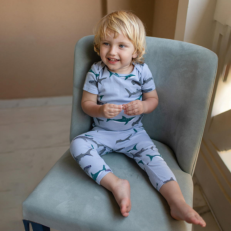 Штанишки Mjölk [мьёльк] Акулы – классические трикотажные штанишки с открытой ножкой на всех размерах. Выполнены из нежного и плотного хлопка, не мешают малышу активно двигаться и не сковывают движений.