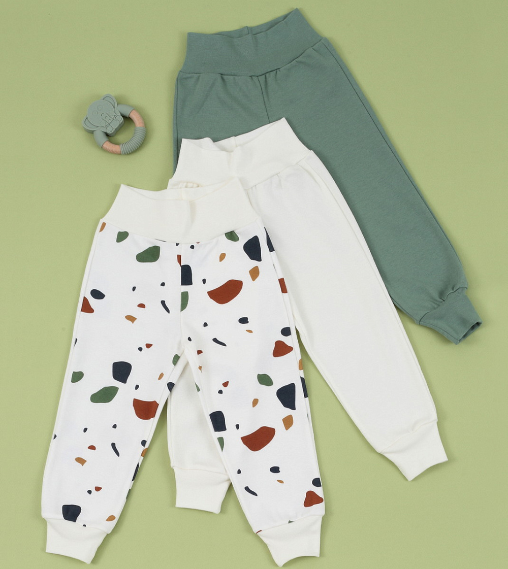 Штанишки из этой коллекции дополнены мягким широким поясом и эластичными манжетами - на маленькие ножки и крохотный животик резинка давить не будет.