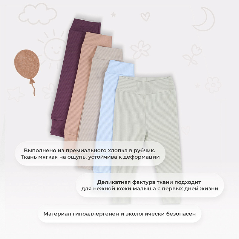 Штанишки из этой коллекции дополнены мягким широким поясом и манжетами - на маленькие ножки и крохотный животик резинка давить не будет.