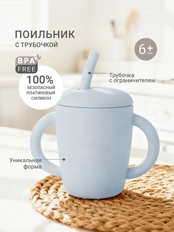Поильник выполнен из безопасного гипоаллергенного материала — премиального 100% пищевого Platinum-силикона, изготовленного по европейским стандартам качества.