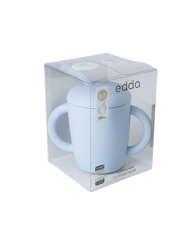 Учимся пить самостоятельно вместе с поильником edda! Уплотнённые стенки придают аксессуару устойчивость и сохраняют его форму, даже если малыш крепко сжимает его в ручках, а две удобные ручки помогают уверенно держать поильник маленькими ладошками. В поильнике есть безопасная силиконовая трубочка, ограничитель которой не даст ребёнку достать её самостоятельно. Мягкая силиконовая крышка плотно прилегает к краям. Объём поильника идеально подходит для одной порции любимого напитка вашего малыша — достаточно, чтобы утолить жажду, но не перегрузить ребёнка.