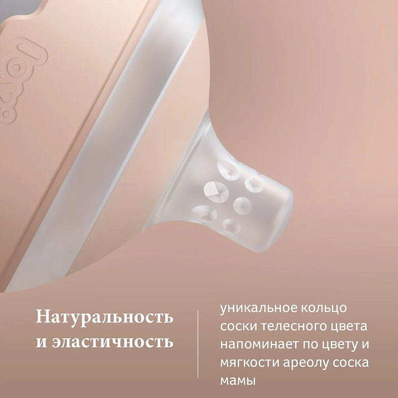 Мягкость и бархатистость - матовая, нежная поверхность соски имитирует кожу мамы, ее текстуру и бархатистость.