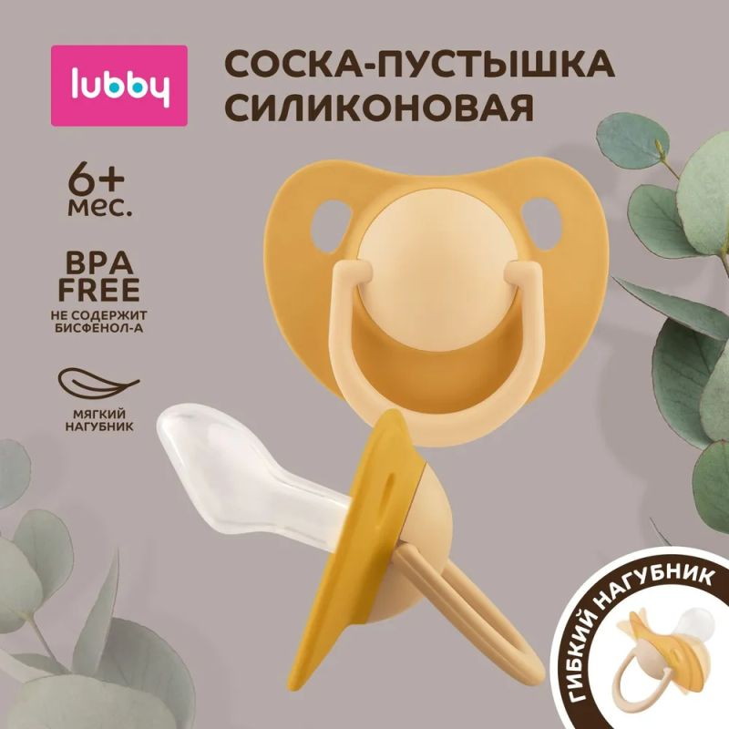 Соска-пустышка Lubby с мягким нагубником, скошенный сосок от 6 мес. 31949