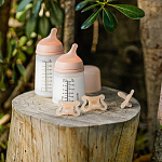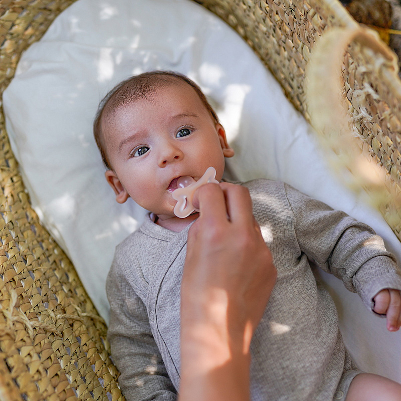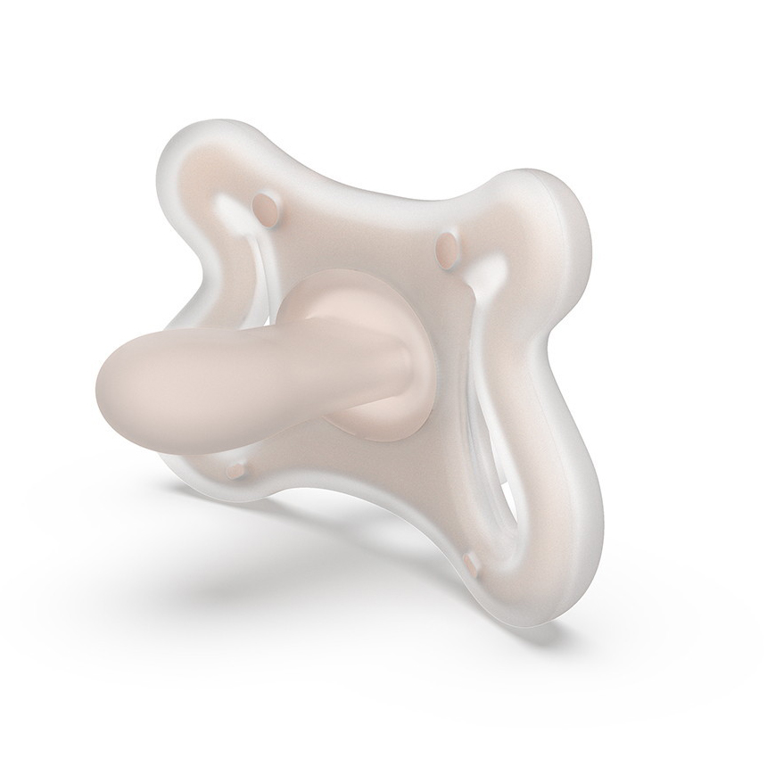 - Соска и корпус пустышки выполнены из гибкого ультрамягкого силикона и по форме и текстуре имитируют текстуру материнского соска