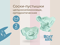 Соска-пустышка цельносиликоновая Roxy-Kids в стерилизаторе, 2 шт, 0-6 мес. RSS-005-2SМ мятная