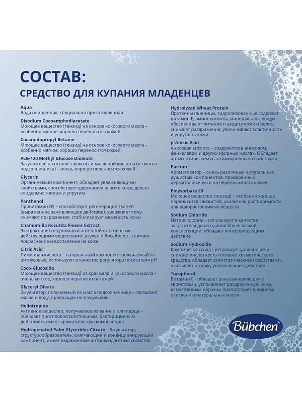 Ассортимент детской косметики для водных процедур неимоверно велик, однако не вся продукция безопасна и полезна для детского организма. Чтобы не тратить время на поиски, рекомендуем вам купить средство Bubchen для купания младенцев 200 мл, которое уже завоевало симпатию у многих родителей по всему миру.