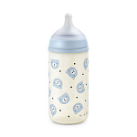 Такая форма оставляет больше места для языка в полости рта и обеспечивает максимально естественное сосание, приближённое к кормлению грудью. Антиколиковый клапан уравновешивает давление внутри и снаружи бутылочки.