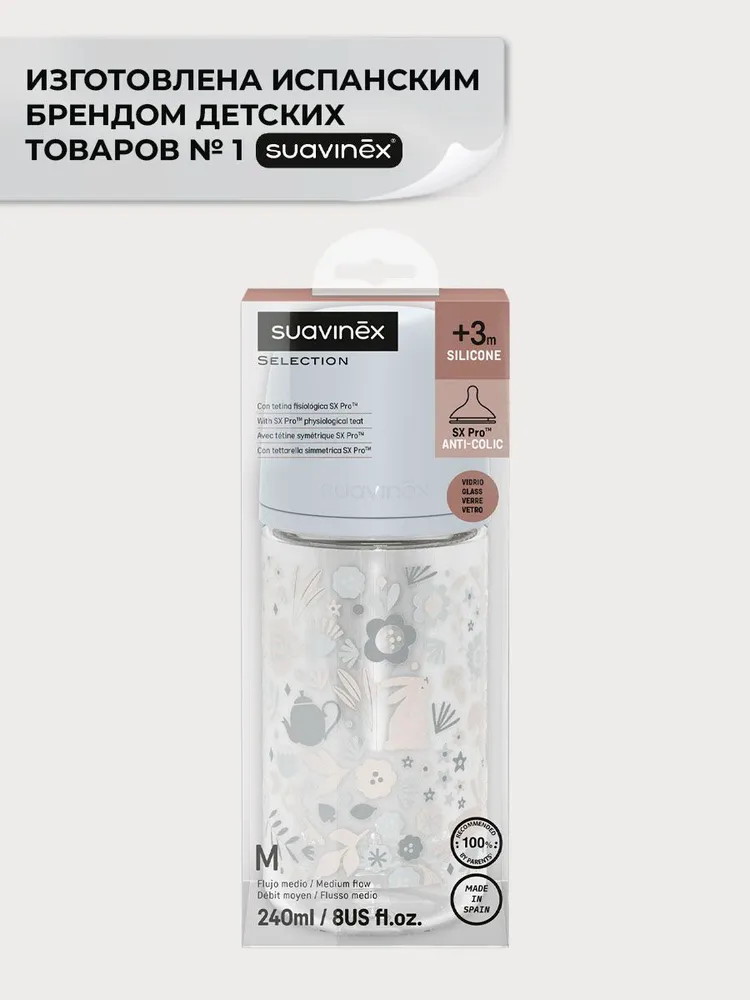 Стеклянная бутылочка Suavinex Wonderlend для детского питания 240 мл 308794 LIBER BLНет оценокХарактеристики