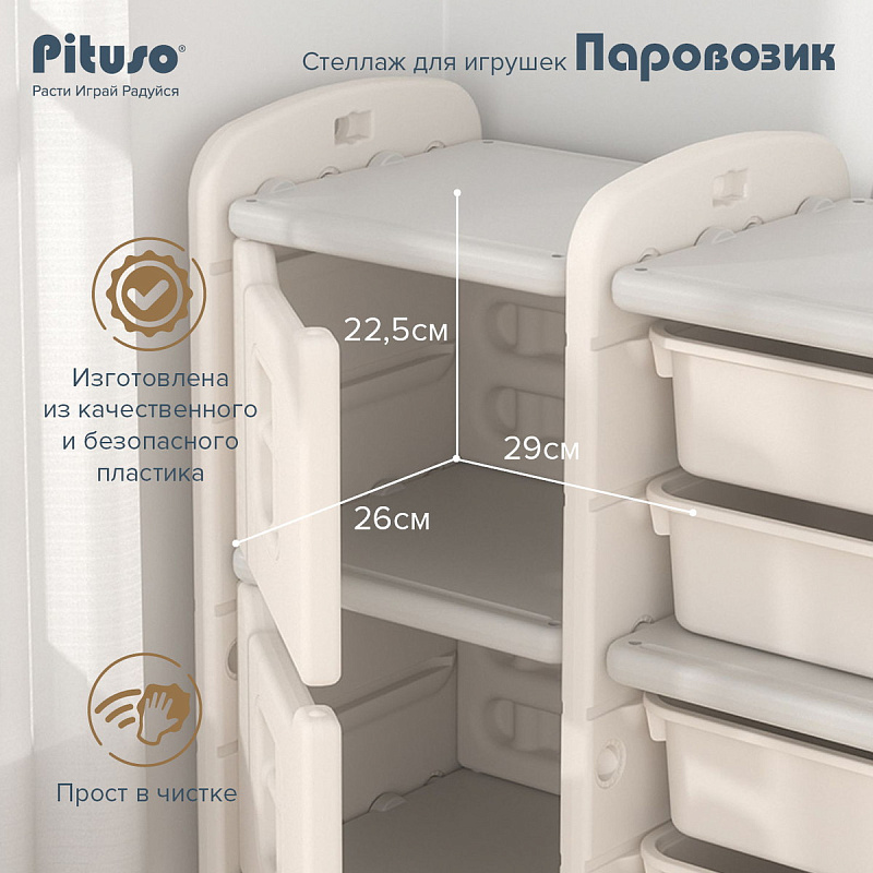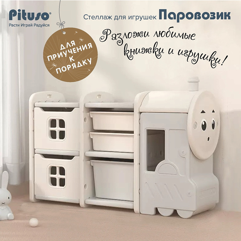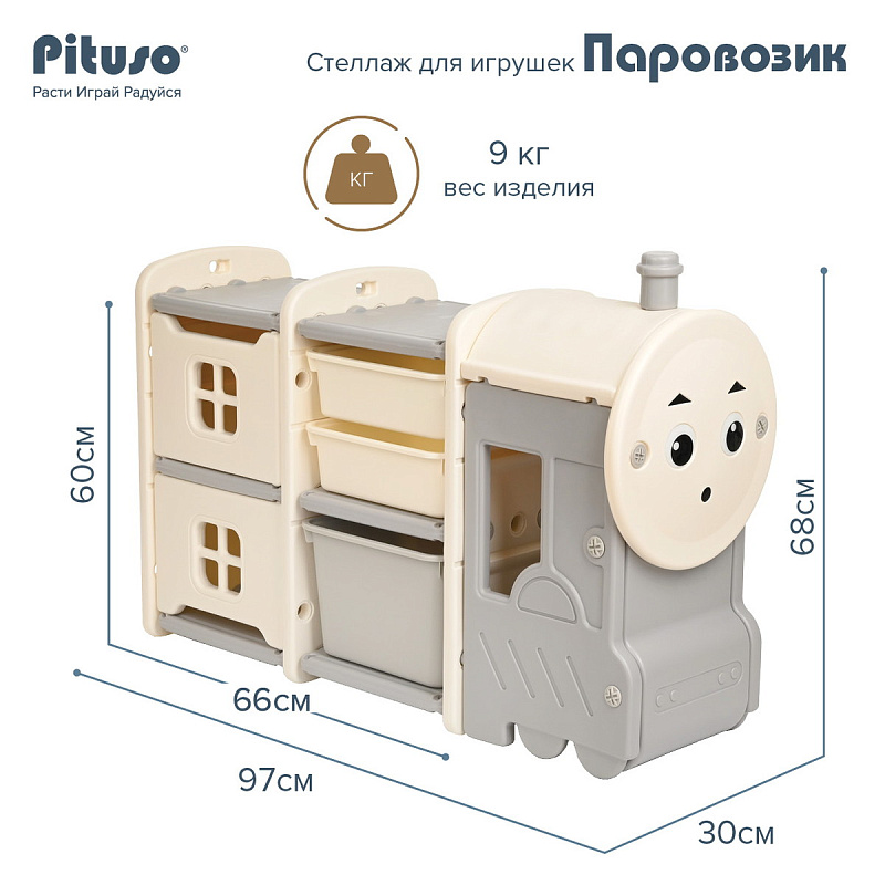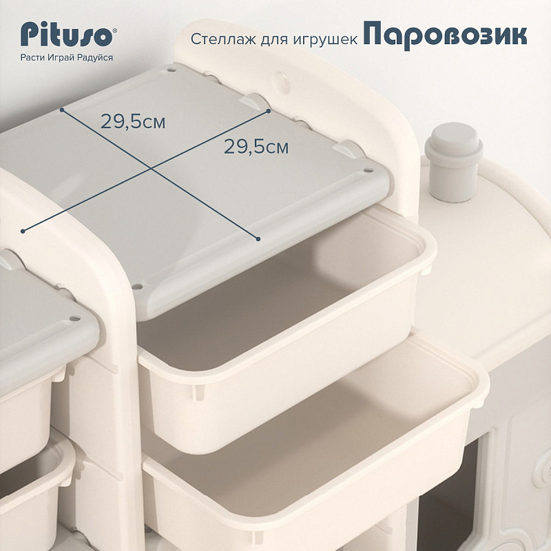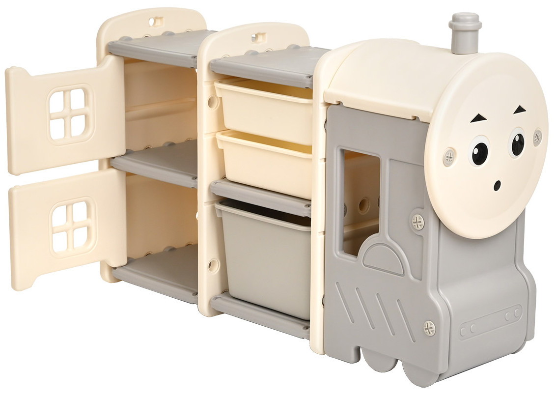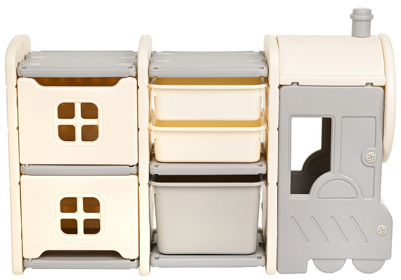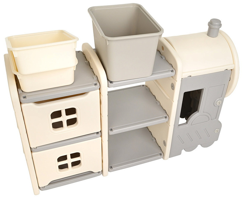 Стеллаж для игрушек Pituso Паровозик с ящиками Grey/Серый-белый