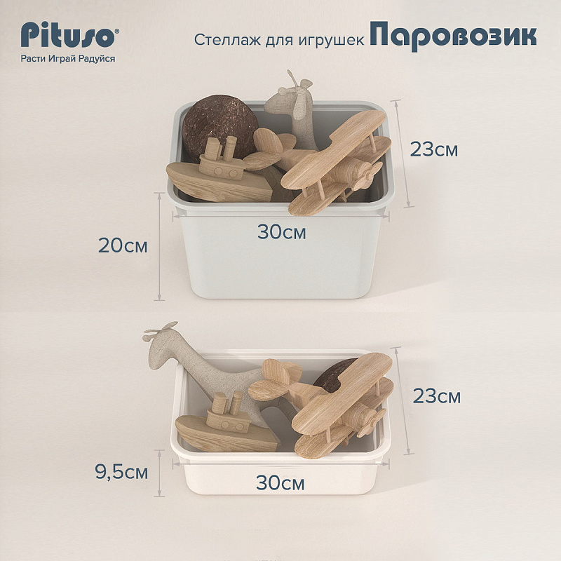 Небольшие размеры стеллажа помогут приучать к порядку малышей самого младшего возраста.