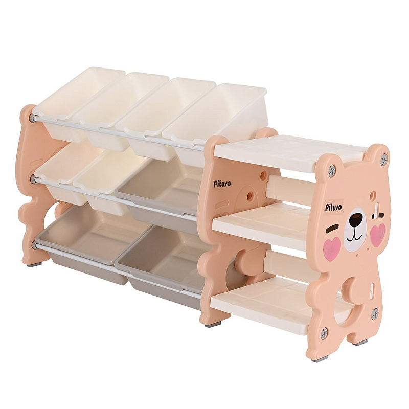 Стеллаж для игрушек Pituso с ящиками Медвежонок, 3 полки Pink/Персик