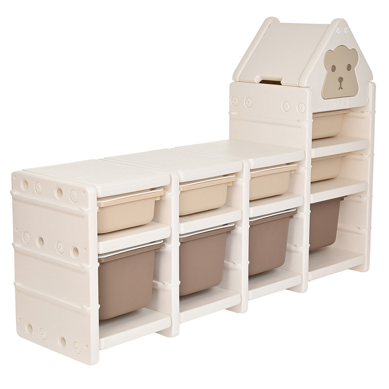 Стеллаж для игрушек Pituso SuperBox Сream с ящиками white+camel/Кремовый