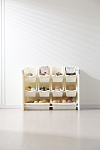 Преимуществом пластикового стеллажа для игрушек с ящиками является его компактность и функциональность: десять вместительных ячеек позволяют рационально организовать пространство комнаты любого размера. Теперь разместить множество игрушек, книг, учебных пособий стало легко и просто. Цветовая гамма представлена серым оттенком, гармонично сочетающимся практически с любым интерьером и подходящим как для мальчиков, так и для девочек.