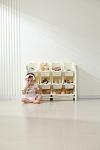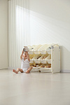 Особое внимание уделено выбору материала: используется исключительно сертифицированный пластик высокого качества, абсолютно безвредный для здоровья малышей и взрослых. Стеллаж обладает гладкой поверхностью без выступающих деталей и острых углов, исключающей риск травмирования ребенка.