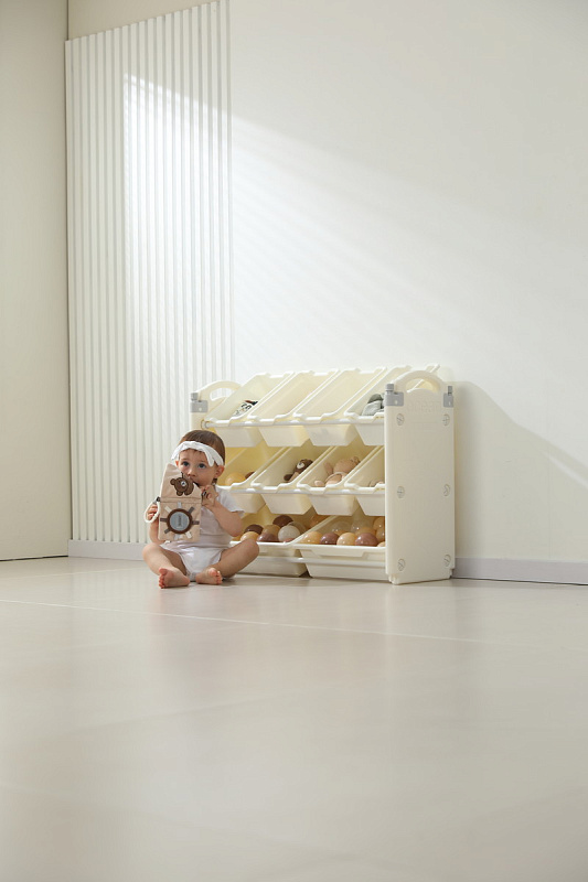 Особое внимание уделено выбору материала: используется исключительно сертифицированный пластик высокого качества, абсолютно безвредный для здоровья малышей и взрослых. Стеллаж обладает гладкой поверхностью без выступающих деталей и острых углов, исключающей риск травмирования ребенка.