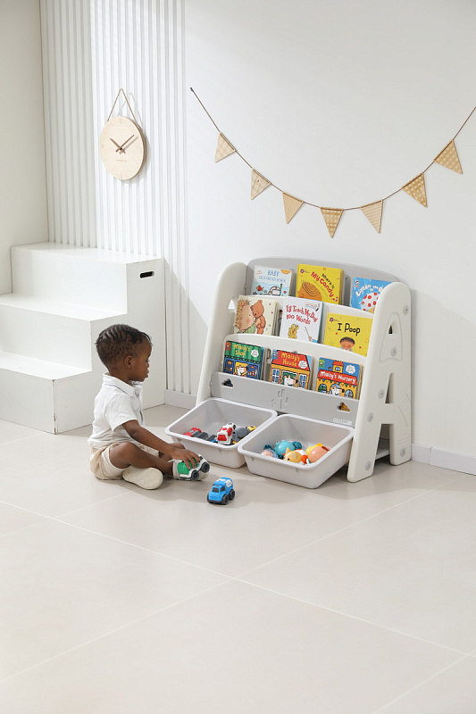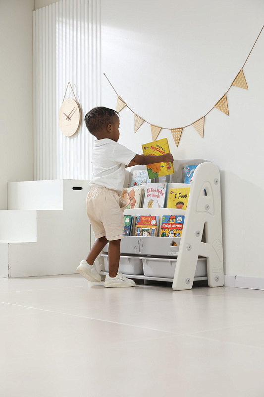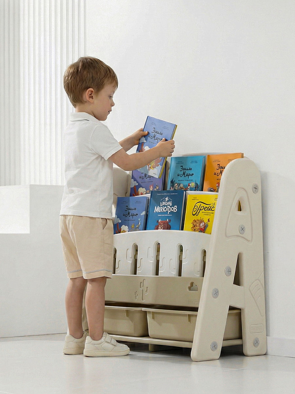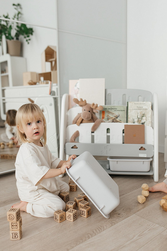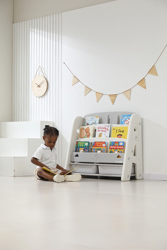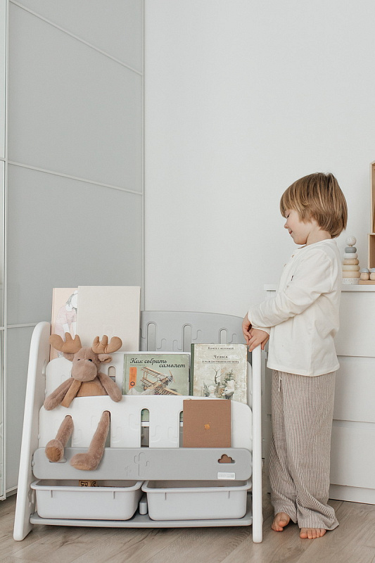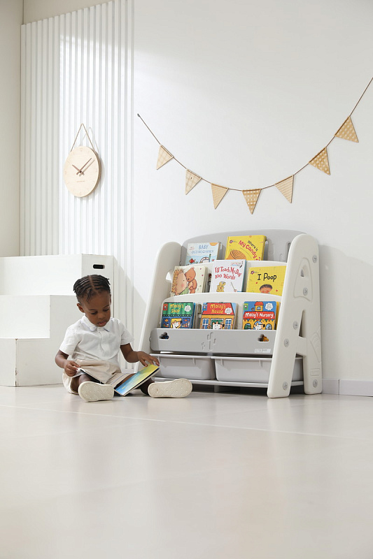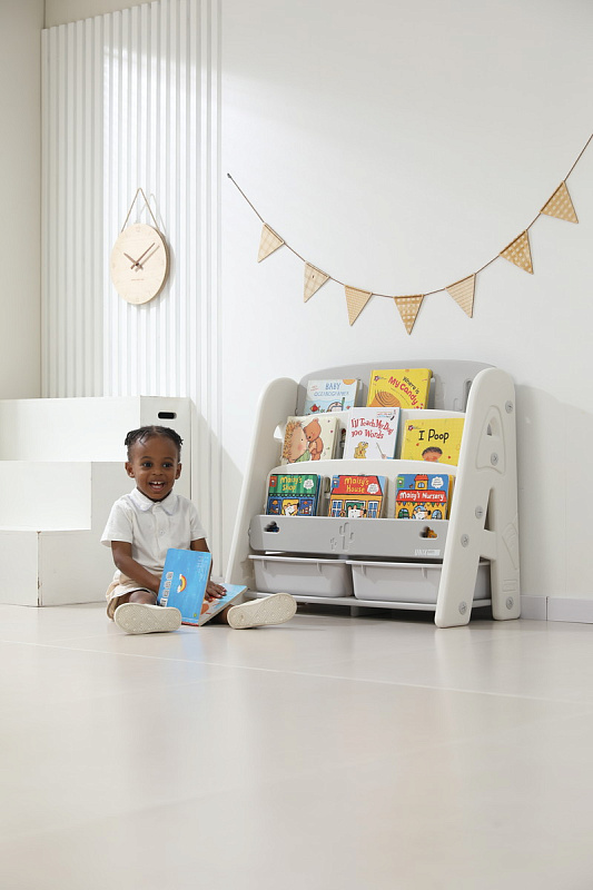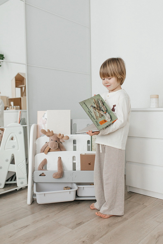 Организация пространства с помощью пластикового стеллажа способствует развитию ответственности у детей. Малыш будет постепенно привыкать к порядку и самостоятельно расставлять свои богатства! А также напольная конструкция позволит ребенку самому выбирать книжки для чтения перед сном!