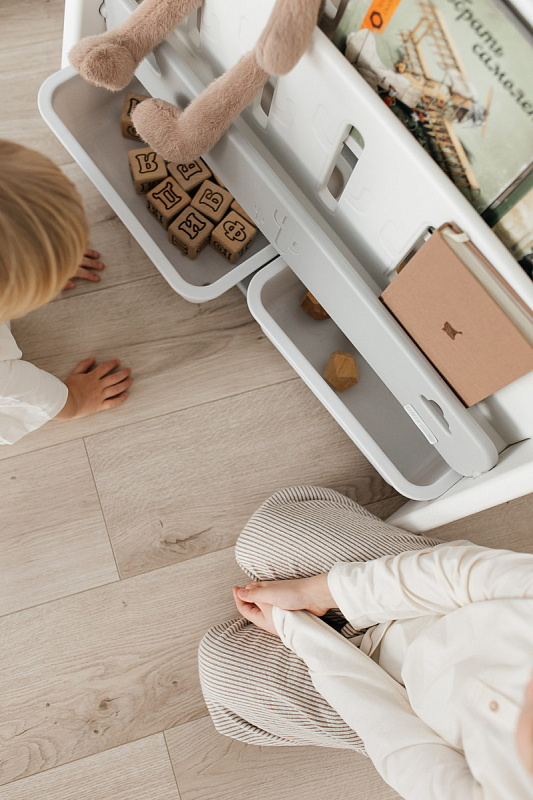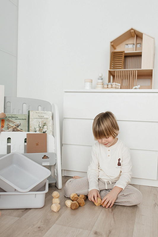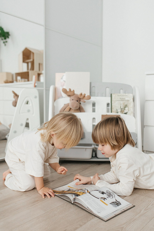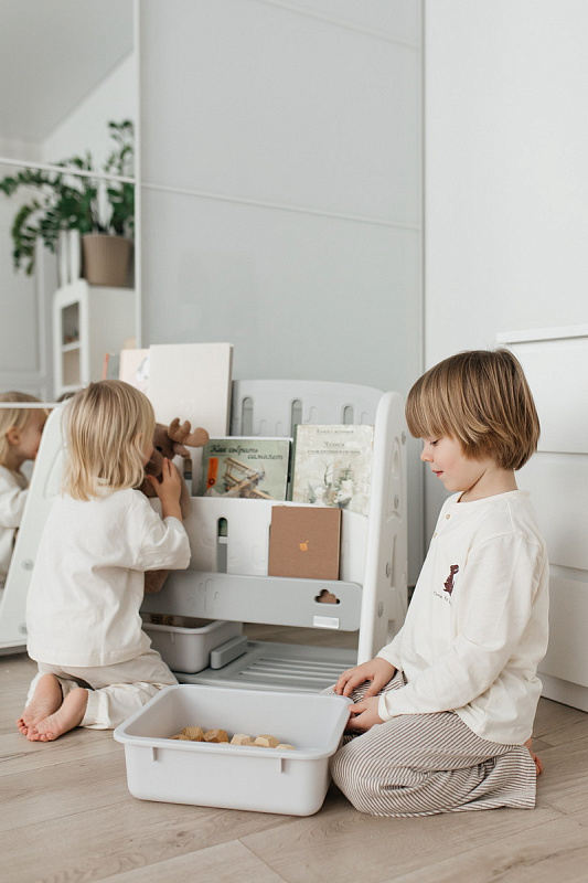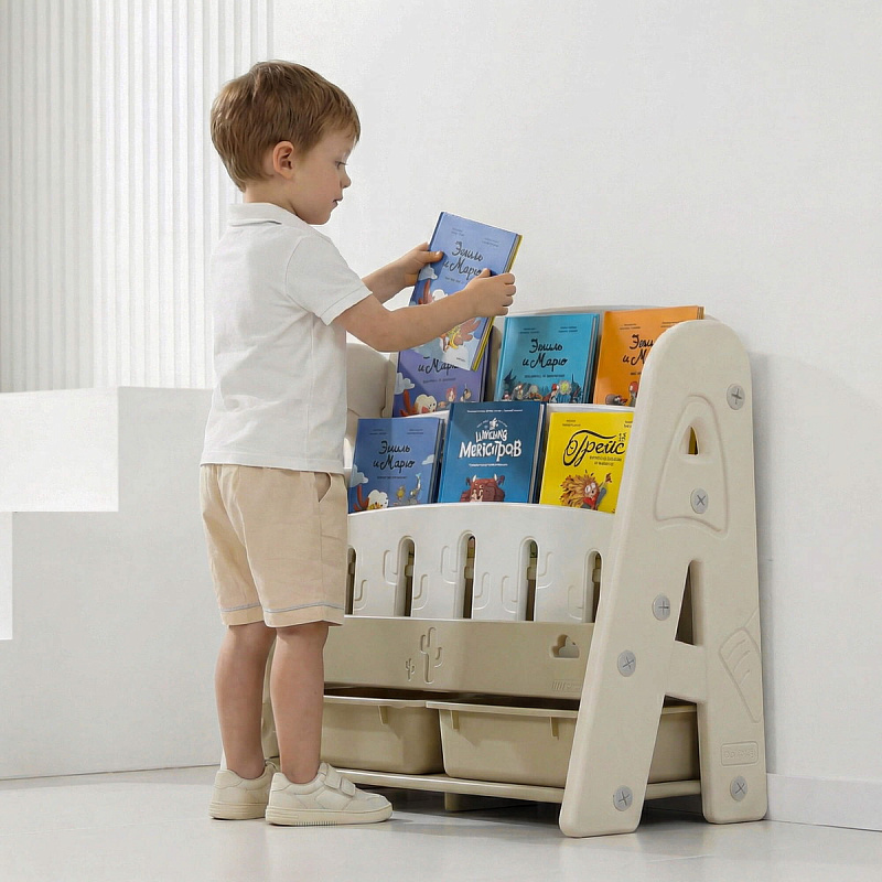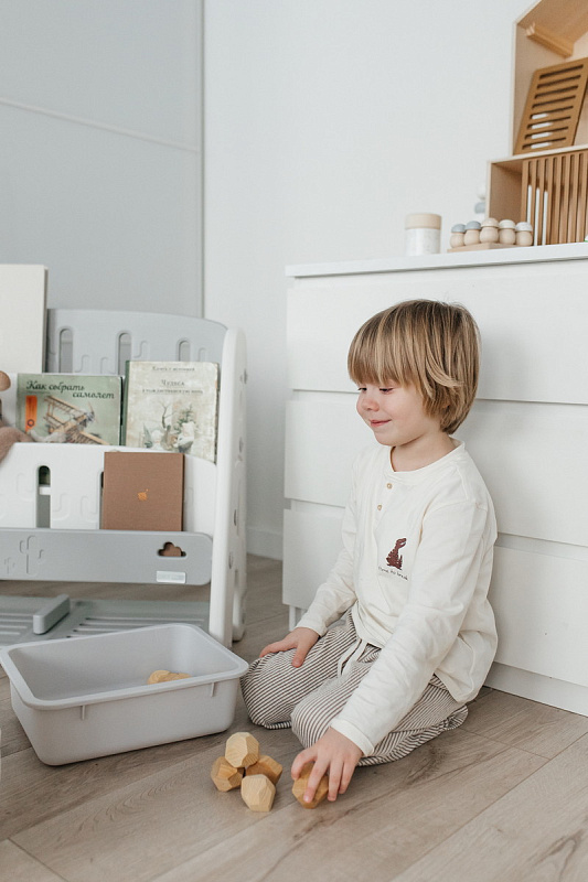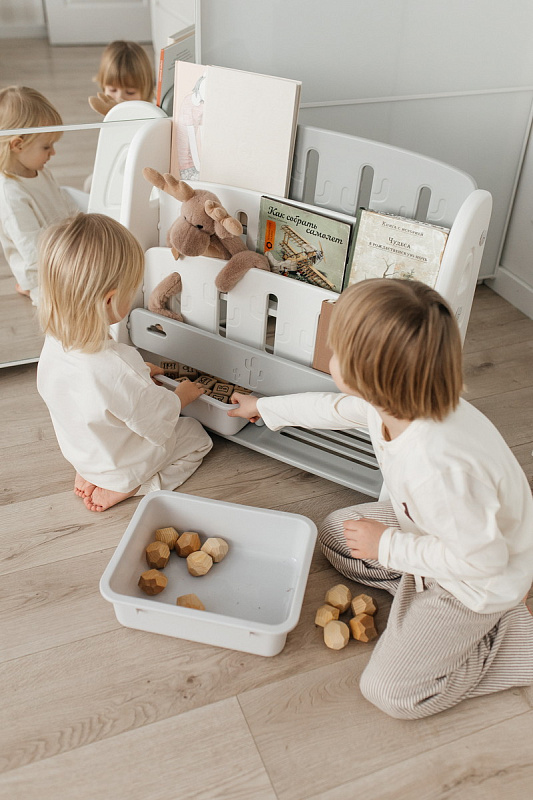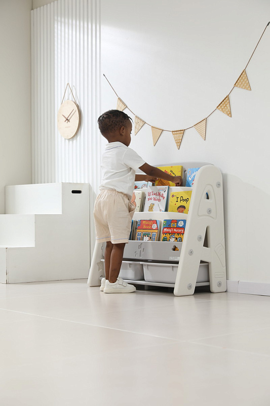 Организация пространства с помощью пластикового стеллажа способствует развитию ответственности у детей. Малыш будет постепенно привыкать к порядку и самостоятельно расставлять свои богатства! А также напольная конструкция позволит ребенку самому выбирать книжки для чтения перед сном!