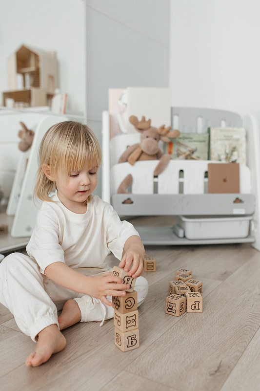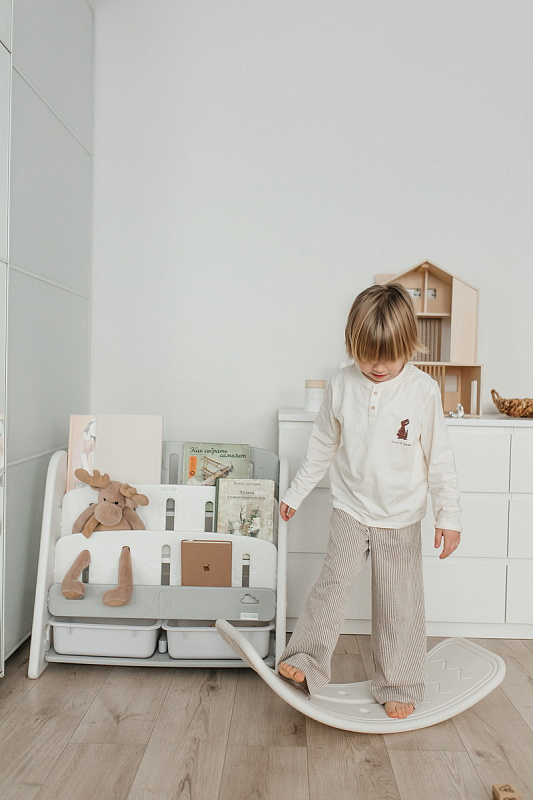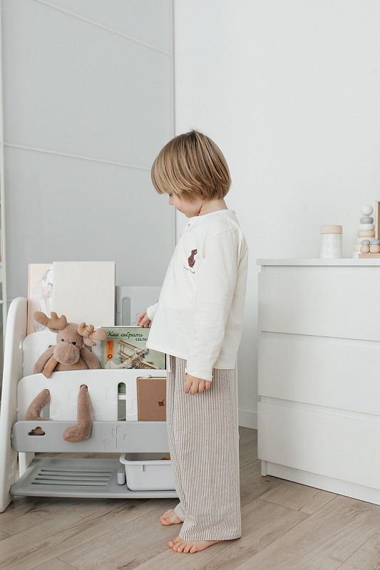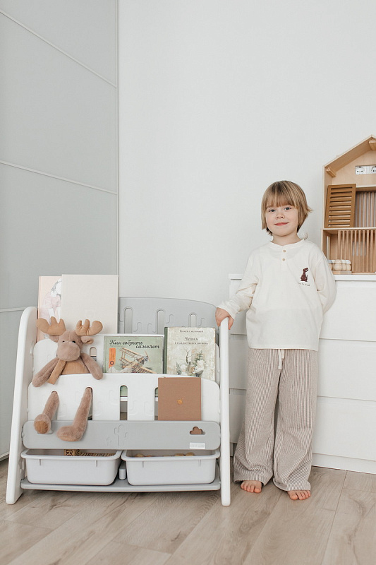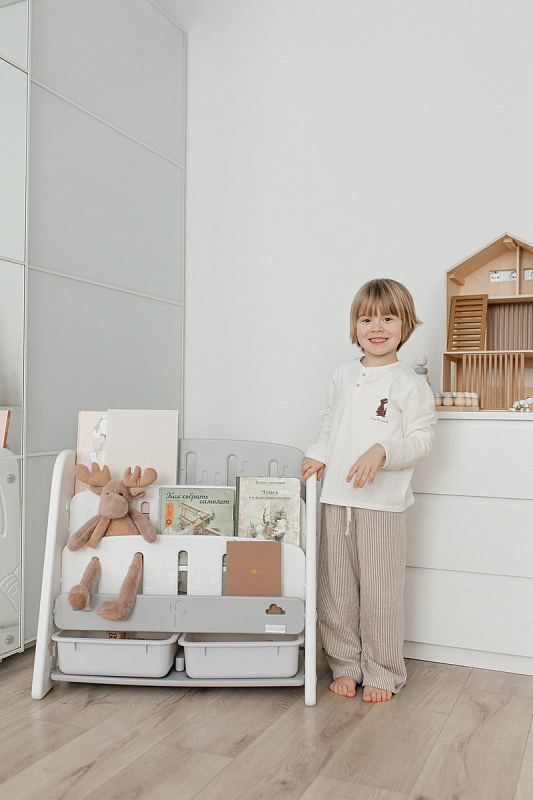 Стеллаж легко собирается с помощью простых инструкций. Вы сможете быстро установить его в комнате вашего малыша, не тратя много времени и усилий.