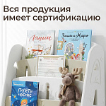 Органайзер Монтессори для книг и журналов изготовлен из гипоаллергенного пищевого пластика, без острых углов и токсичных красителей. Прочная устойчивая конструкция гарантируют долговечность и надежность, что позволяет использовать его на протяжении многих лет.