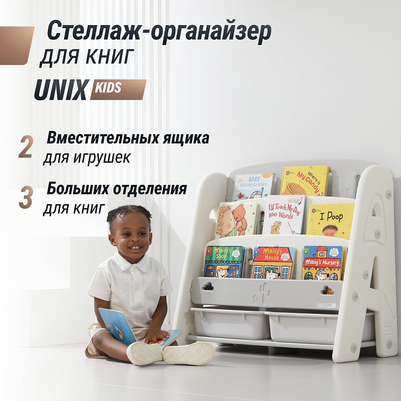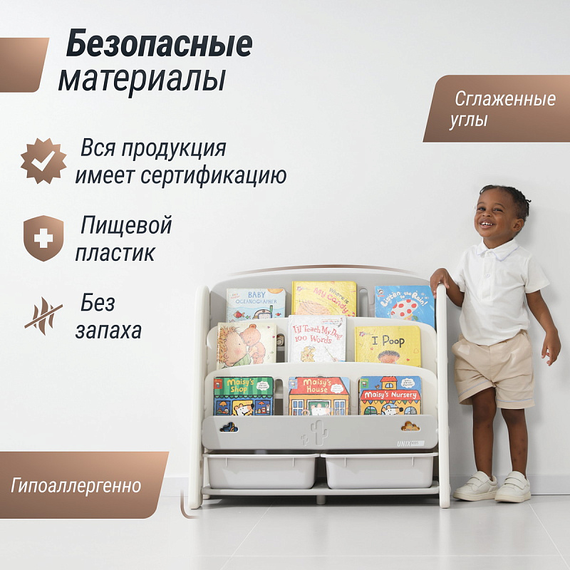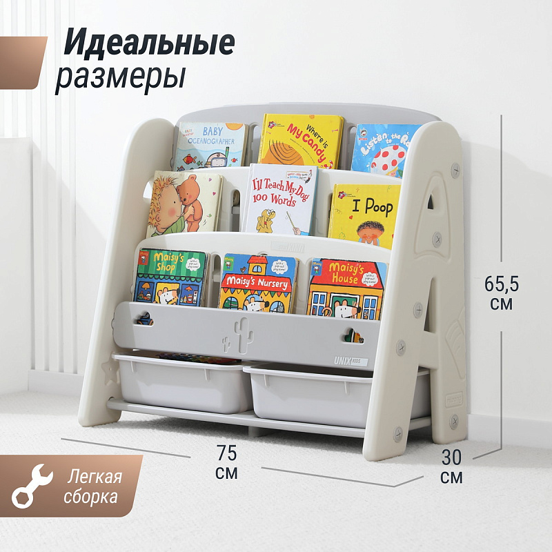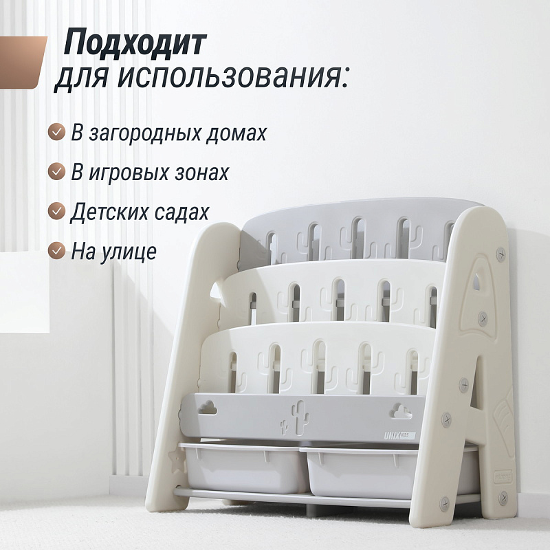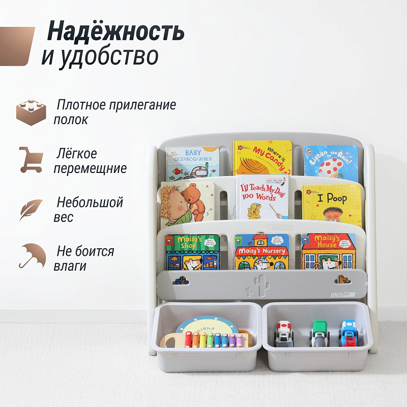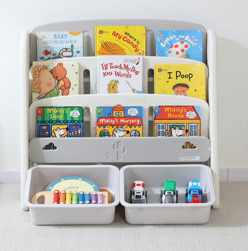 Стеллаж для хранения игрушек и книг UNIX Kids Кактус Сactus Grey