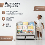 Органайзер Монтессори для книг и журналов изготовлен из гипоаллергенного пищевого пластика, без острых углов и токсичных красителей. Прочная устойчивая конструкция гарантируют долговечность и надежность, что позволяет использовать его на протяжении многих лет.