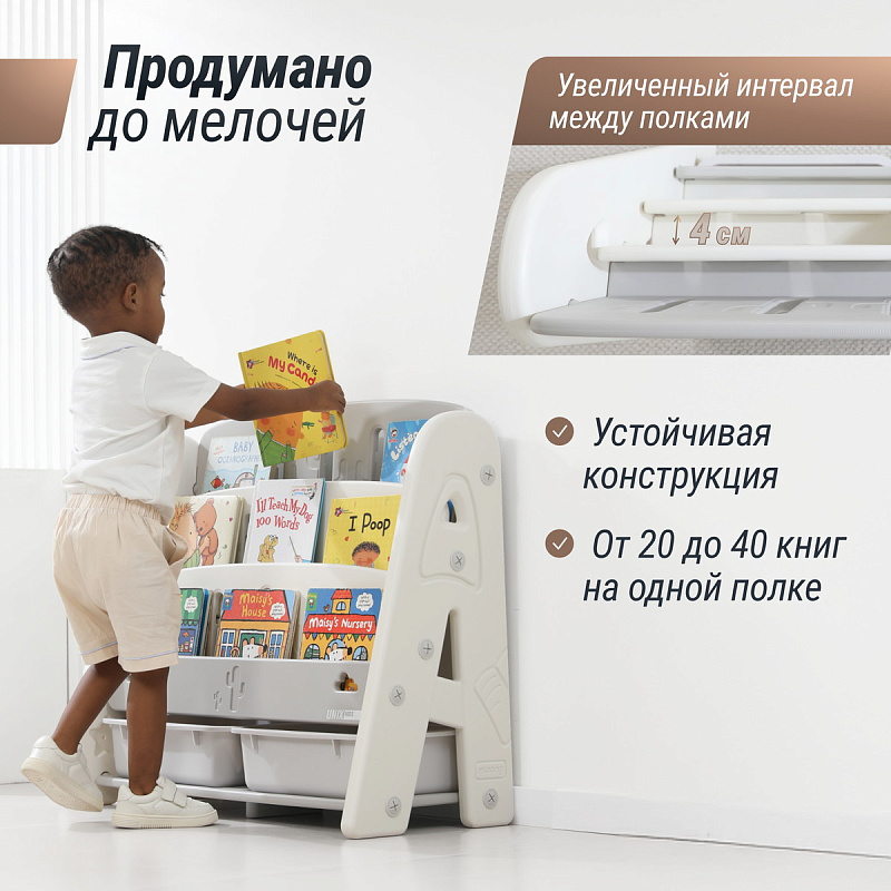 Подставка подходит не только для хранения книг и игрушек, но и может использоваться для размещения художественных материалов, учебников или даже как место для выставки детских поделок!