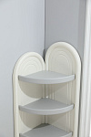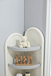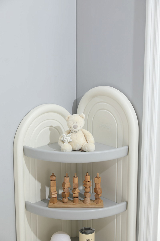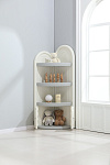 Угловой стеллаж для хранения состоит из трех открытых полок и одной закрытой, открытые имеют глубину 39 см и высоту 27 см, что позволяет разместить на них книги, игрушки и другие предметы. Высота закрытой полки 35 см. Высота шкафчика составляет 138 см, что позволяет разместить его в углу комнаты, экономя пространство.