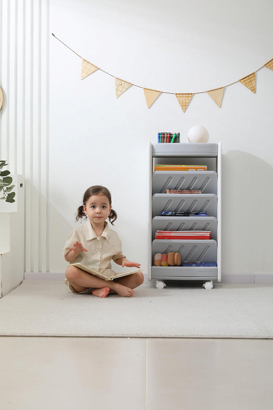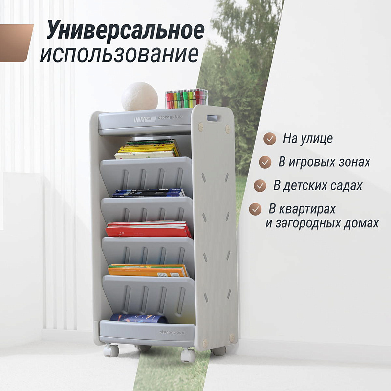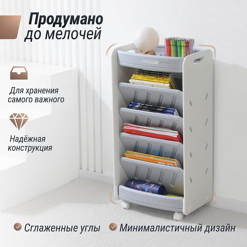 Стеллаж для книг и игрушек UNIX Kids Storagebox 5 levels Grey
