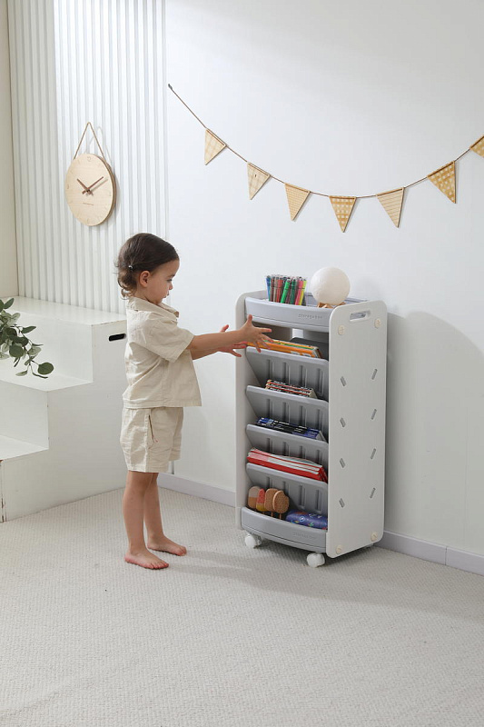 Напольный стеллаж позволяет удобно рассортировать и разместить книги, журналы и тетради. Органайзер можно использовать для хранения игрушек или предметов для хобби малыша. Открытый стеллаж поможет создать чистоту и порядок в детской комнате, позволяя хранить игрушки в определенном месте.