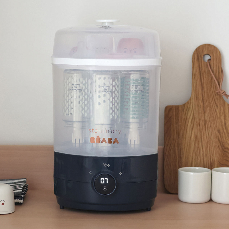 Стерилизатор электрический BEABA — быстрый и удобный электрический стерилизатор 2 в 1. Он одновременно выполняет 2 функции: стерилизатора и сушки. Эта модель идеально подходит для бутылочек, баночек, пустышек и различных аксессуаров для кормления.