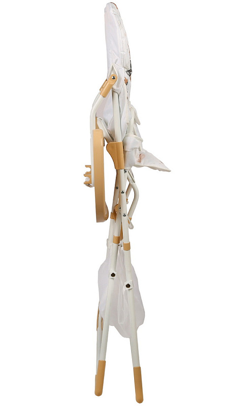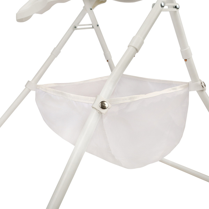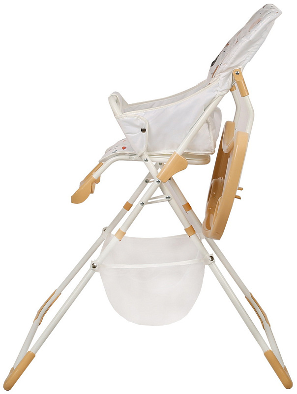 Большая гладкая столешница с двумя углублениями для стаканов и бортиком защитит пол от крошек и капель. Чтобы удобнее кормить малыша с ложечки или ближе придвинуть к общему столу, достаточно откинуть столик назад.