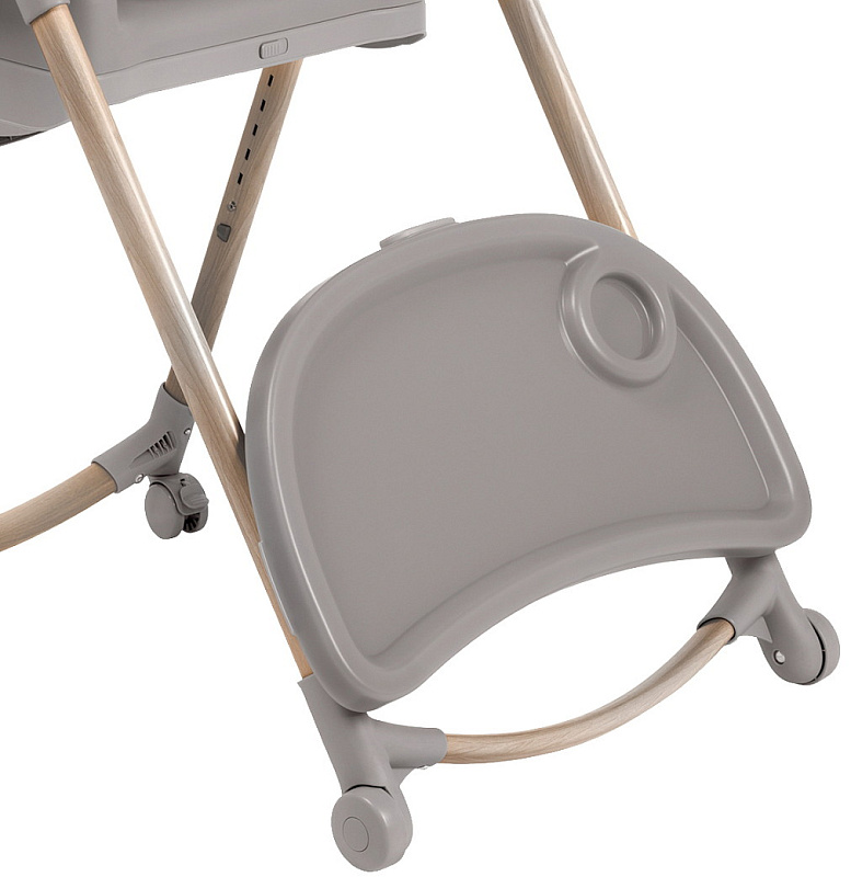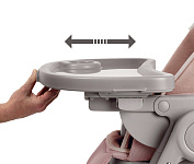 Вращающийся одним движением поднос обеспечивает удобный доступ при посадке ребёнка в кресло, а ремни безопасности можно крепить на специальные крючки, чтобы было удобно сажать ребенка.