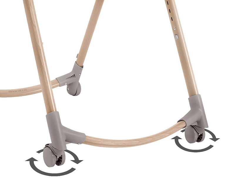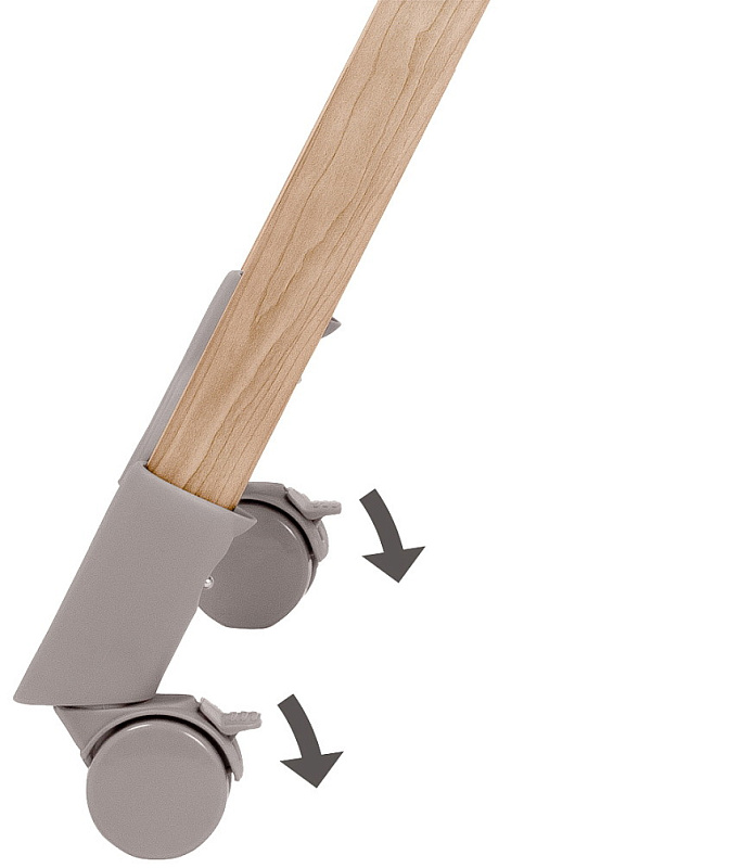 Благодаря передним поворотным колёсикам с тормозами, обеспечивающими дополнительную безопасность и устойчивость, Minla Plus легко найти подходящее место за столом.