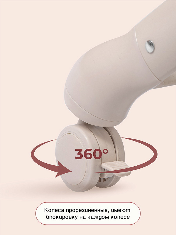 Колеса прорезиненные, крутятся на 360 градусов и имеют блокировку на каждом колесе.