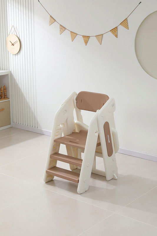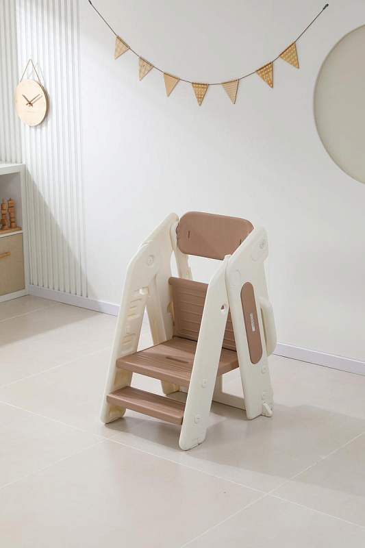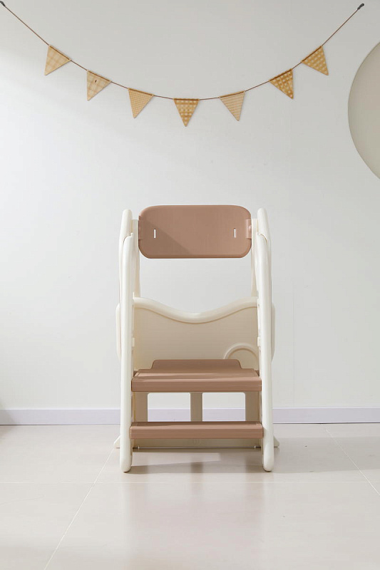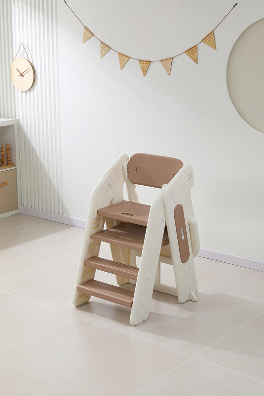 Растущий стул выполнен из пластика с закругленными углами, рельефные ступени и сидушка выполнены с тщательным вниманием к безопасности для ребенка.
