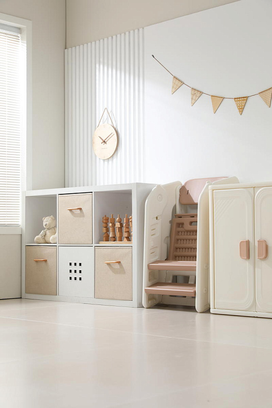 Стульчик легко складывается и становится очень компактным. Размеры в сложенном виде 47 х 41 х 75 см. В небольшой кухне или комнате он не займет много места, а за счет небольшого веса его легко перемещать в пространстве. Нежная расцветка и лаконичный дизайн идеально подойдут в детскую комнату как мальчика, так и девочки.