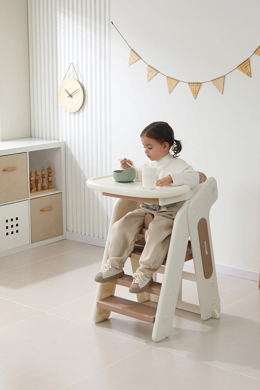 Этот стул не просто место для кормления. В считанные минуты он превращается в комплект для игр, позволяя малышу наслаждаться творческими занятиями, рисованием или конструированием. С таким универсальным решением вы сможете сэкономить место и деньги, не покупая отдельные предметы мебели.