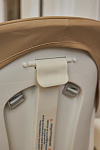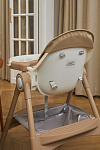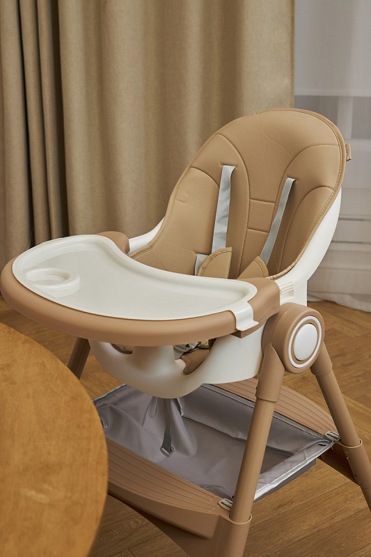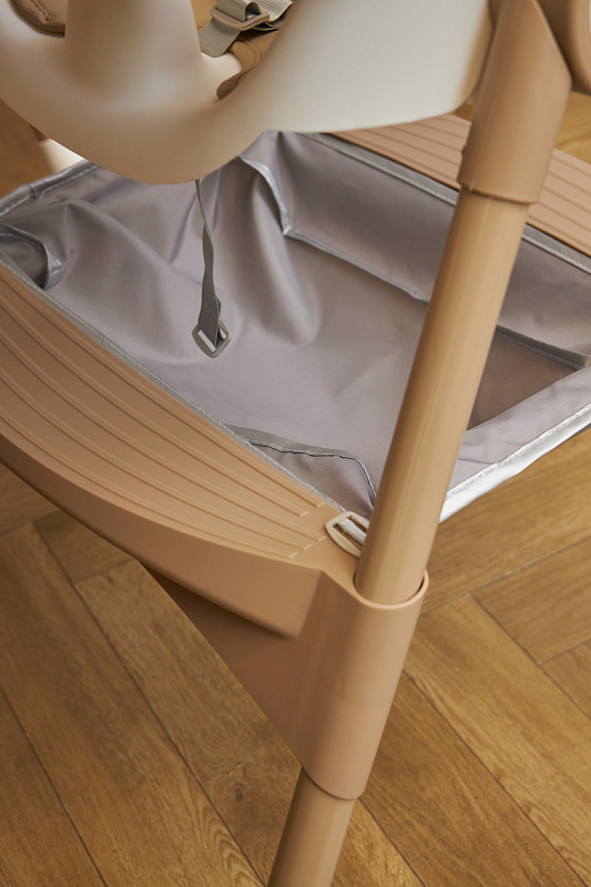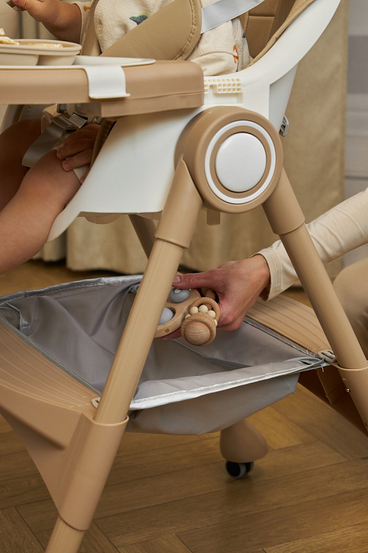 Дополнительные удобства обеспечиваются съемным органайзером для любимых игрушек ребенка, съемным столиком с регулировкой по глубине и дополнительным подносом-вкладышем, которые позволяют разместить необходимые предметы рядом с крохой, предотвращая хаос вокруг места приема пищи. Углубление под бутылочку гарантирует безопасность и удобство питья.