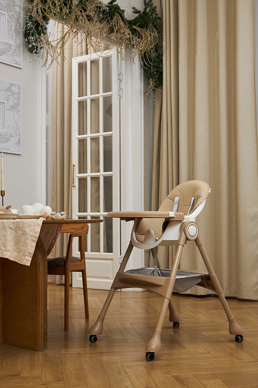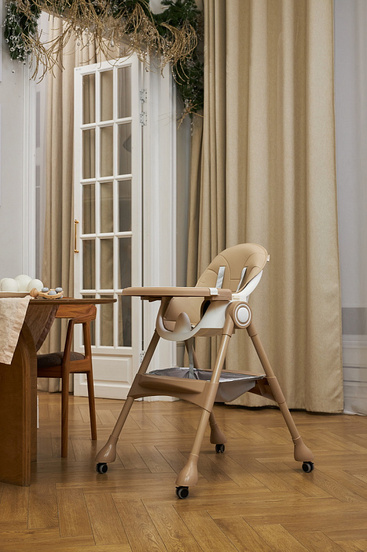 Устойчивость, закругленные углы стульчика для кормления на колесах исключают риск травмирования, создавая дополнительную защиту вашему малышу.